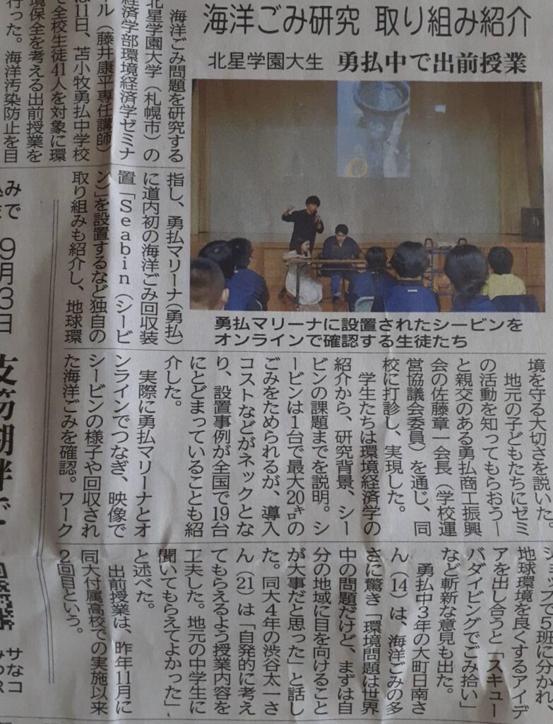 勇払商工振興会では北星学園大学藤井ゼミによる『Seabinから始まる海のお掃除大作戦プロジェクト』に協力しています。