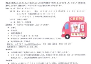 2023.05.28花火大会に出店していただけるキッチンカーを募集しています!7/22(土)は勇払の花火大会です🎆 勇払商工振興会では出店していただけるキッチンカーを募集しています! まだ数台入れますよ! 一緒に勇払を盛り上げてくれる事業者の皆さん、お待ちしています😃 -