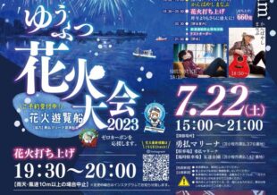 2023.06.09ゆうふつ花火大会 遊覧船乗船者募集🎇ゆうふつ花火大会2023🎆ゆうふつ花火大会では海から花火を見ることも可能なんです‼️素晴らしい眺めですよ‼️(きっと)船の定員に限りがあるため先着順になります。yufutsumarina@bellport-hokkai […] -